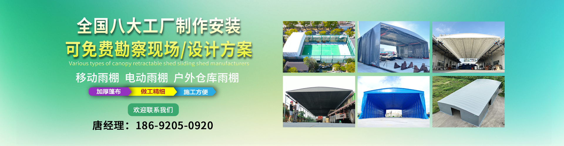 湖南鑫建華鋼結構工程有限公司是一家電動雨棚、膜結構車棚研發,生產銷售,施工安裝于一體的專業鋼結構科技公司,主要產品有伸縮雨棚,電動雨棚,膜結構車棚等?! 『系貐^職員目前有200多人,自建廠房15600平方米,配備先進的生產流水線,使每件品質產品的堅實基礎?! 」驹诤怅枺K州,天津,濟南,鄭州,江門,佛山,武漢,重慶均設有服務工廠,擁有專業的技術團隊,配備先進的設備和流水線生產,產能高,貨源充足,發貨速度快,服務區域廣?! ∫苿由炜s棚適用于通道臨時倉儲、戶外運動遮陽、污水池遮蓋、能源交通、熱力化工、礦山、船舶制造及市政建設、物流、碼頭等領域的構件制作加工,成品半成品存放、倉庫、野外儀器設備操作用房等。尤其是對工廠發貨、倉儲臨時遮雨防嗮,梅雨期較長、建設周期較短的工程施工等特別適用。還可根據用戶需求量身定制、適合企業所需不同款式的產品?! ∥夜緢猿帧罢\信社會為本,客戶滿意為榮”的經營理念,做到質量把控,嚴格管理,精益求精,恪守承諾。使鑫建華逐步走向成熟,其系統化、專業化日趨完善。以專業的技術、科學的管理,更高的產品質量,優良的企業信譽,真誠的客戶服務,靈活多樣的經營方式和務實創新的企業精神愿與社會各界攜手合作,為推動智能鋼結構建筑事業的發展而不斷努力。...